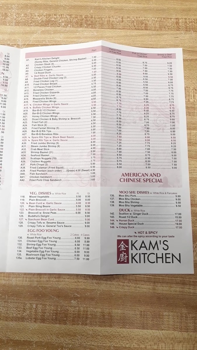 Kam’s Kitchen offers a straightforward yet satisfying menu rooted in classic Chinese fast food favorites, making it a convenient choice for casual meals any time of day. The menu strikes a balance between comforting, familiar dishes and quick, flavorful options for takeout or delivery.